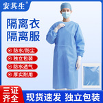 批发安其生医用隔离衣蓝色医护一次性防护衣探视服美容加厚反穿衣